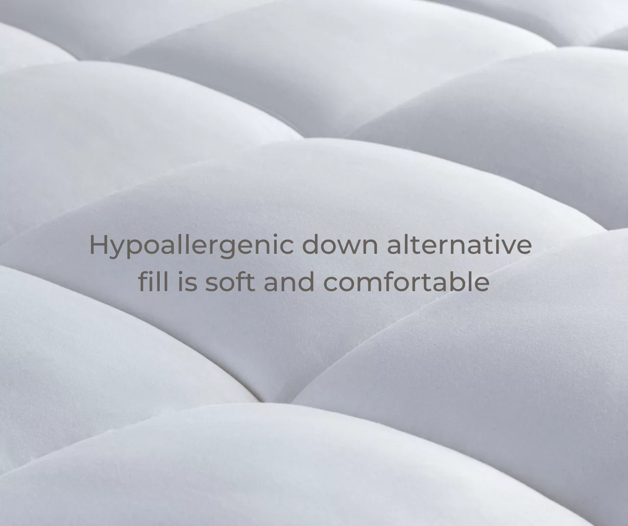 - Light and airy down alternative layer made of 100% cotton is machine washable and dryer safe for added convenience
