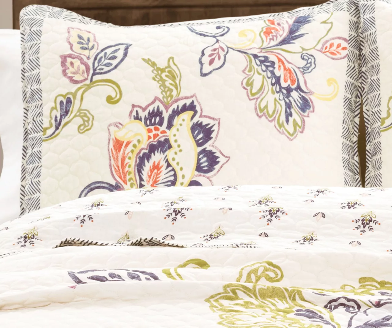 An elegant floral print in coral and navy hues brings a touch of garden elegance to your sleep space, while the breathable cotton construction keeps you cozy and comfy through the night.