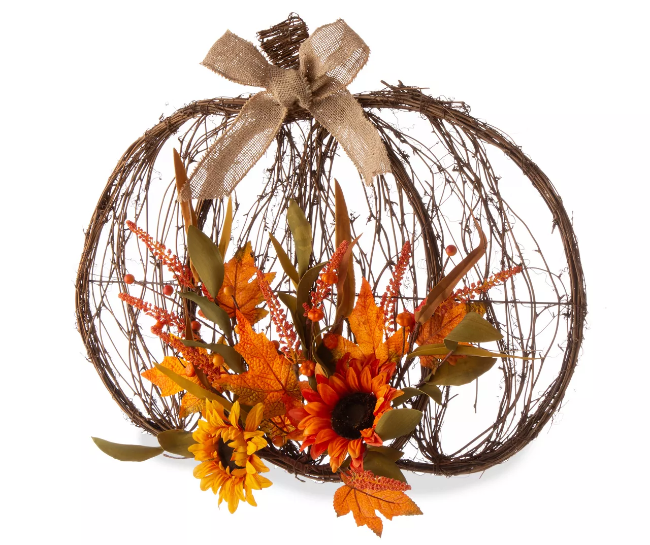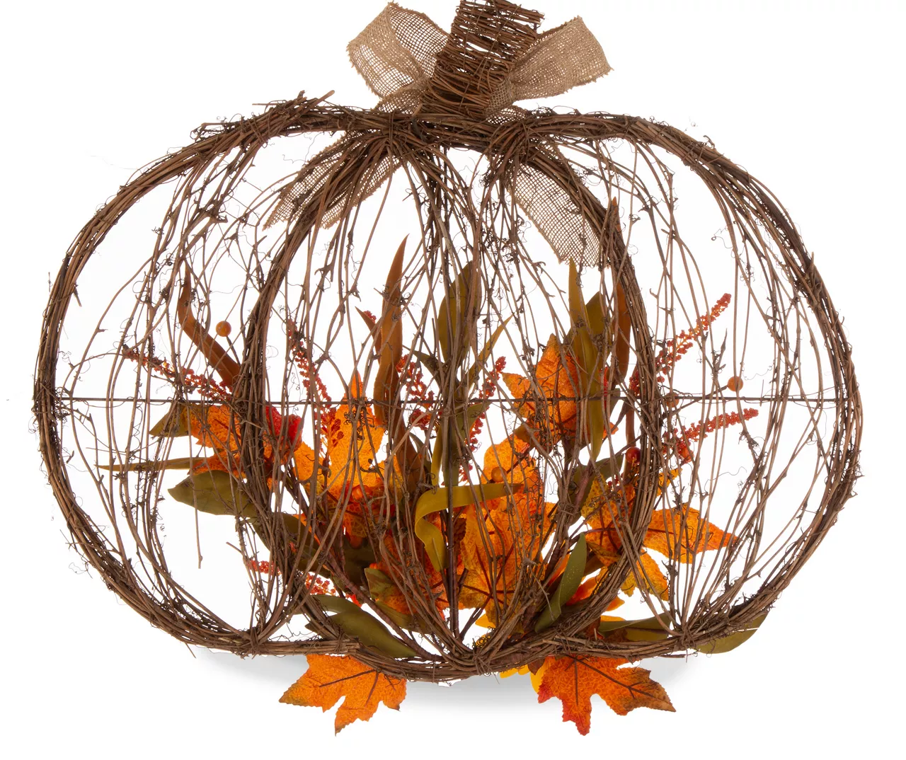 Create a lovely autumn display in your home using this piece inspired by nature. Rattan is shaped like a pumpkin as an artificial arrangement of fall leaves, sunflowers and berries displays on the bottom. It’s a beautiful seasonal addition to a living space, dining room or entryway.