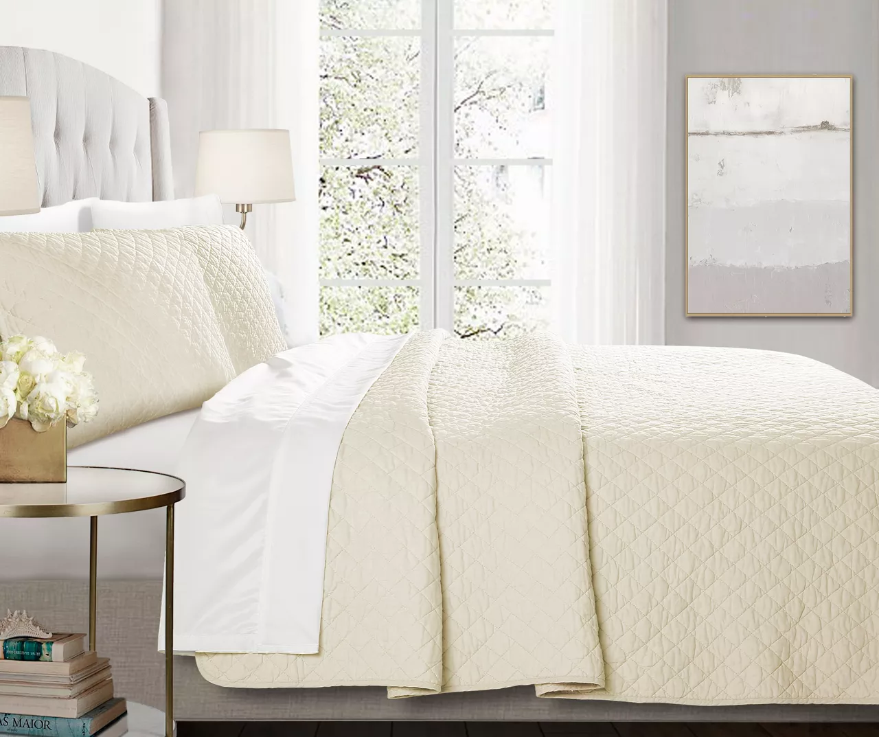 Diamond-shaped quilting brings modern sophistication to this quilt set crafted from breathable cotton for comfort. A solid hue makes it easy to blend with your existing furniture and décor.