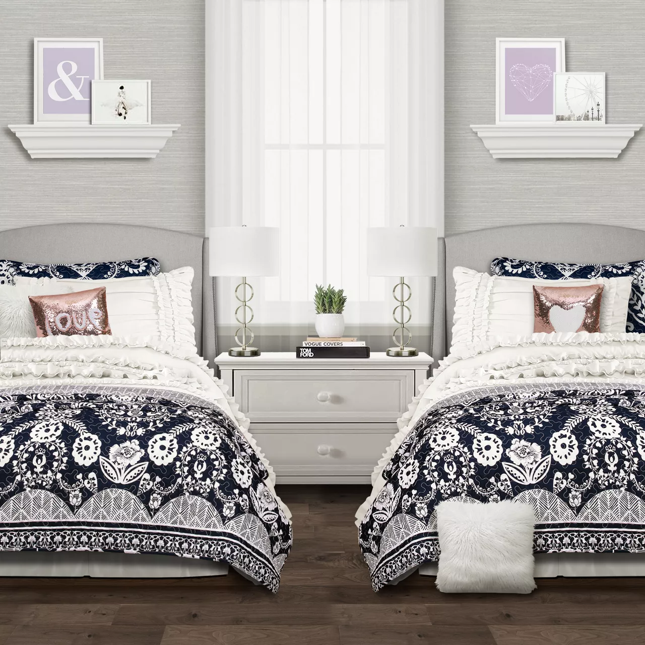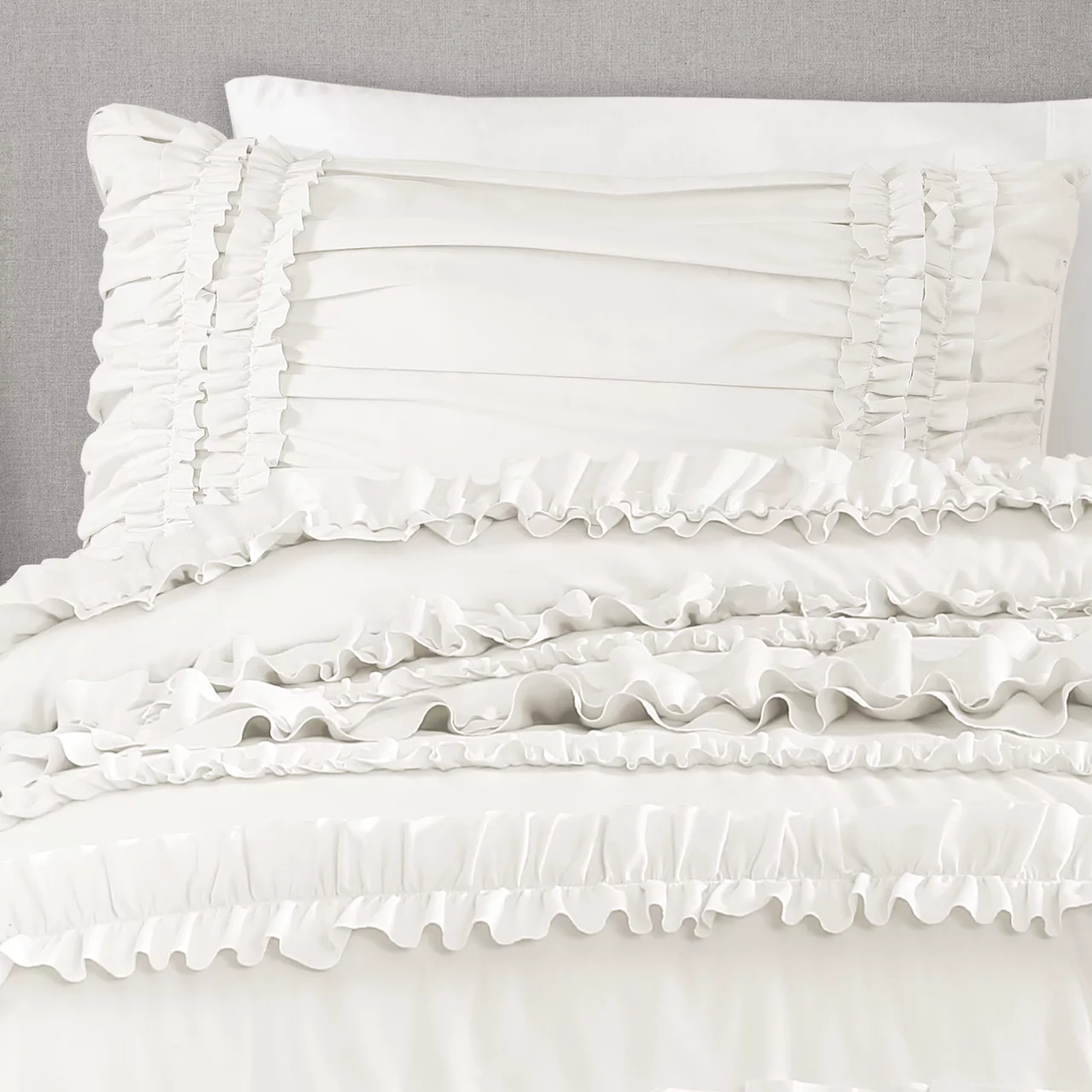 - Lines of ruffles bring playful panache to your sleep space