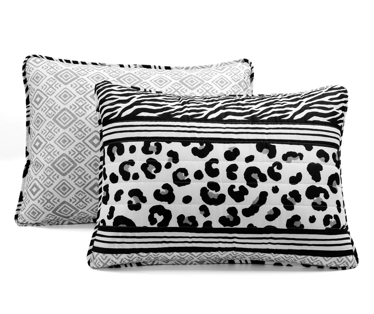 Bring a wild edge to your master or guest bedroom with the bold black and white hues and animal blocked prints of this quilt set from Lush Decor. The stripes alternate between different animal prints and geometric designs, and it can be reversed to a geometric pattern for twice the styling options.