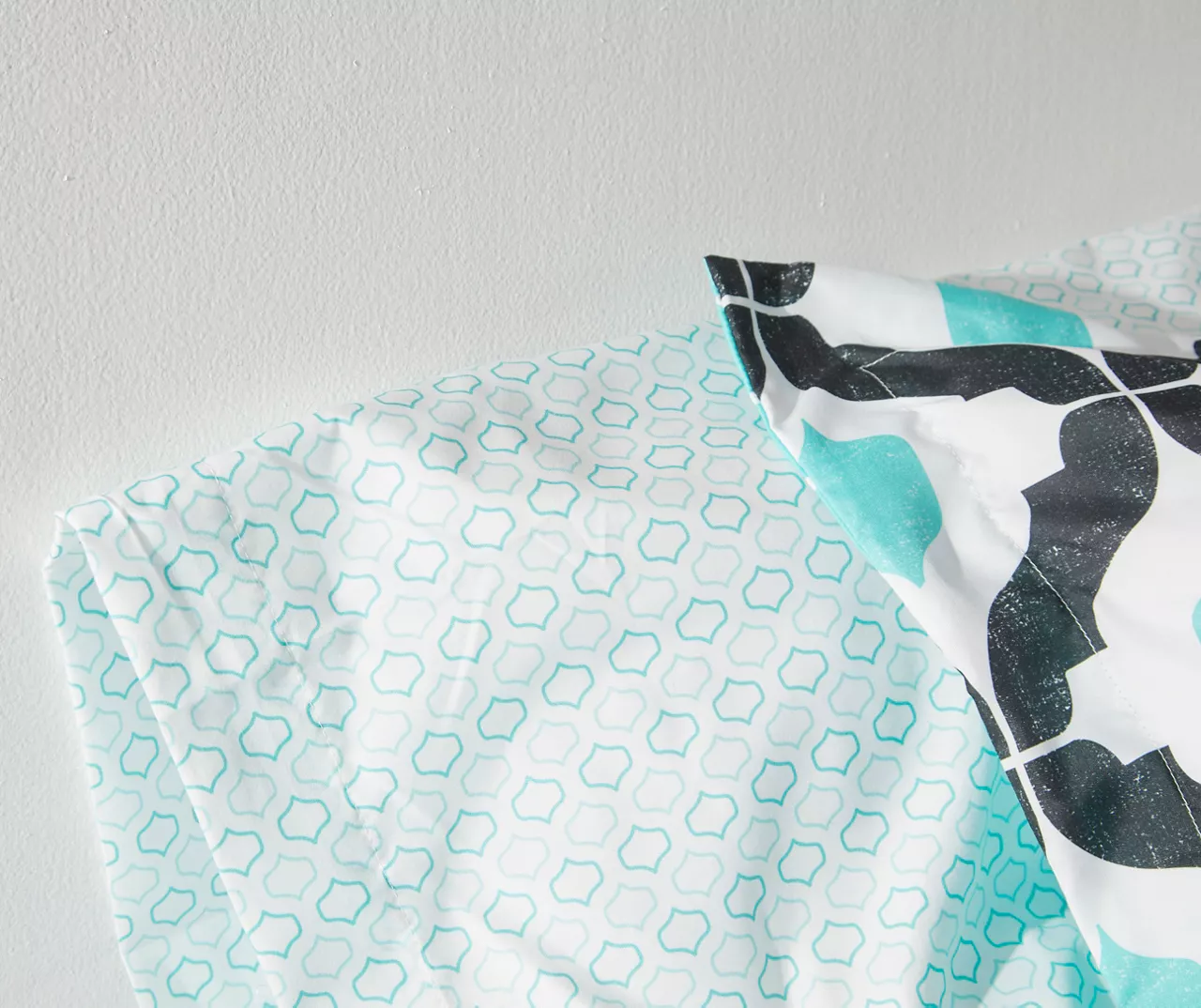 Refresh a master or guest bedroom from headboard to footboard with the bold black, aqua and white arabesque pattern of this all-in-one bedding set from Real Living. Soft microfiber fabric is sure to keep you cozy and comfy through the night.