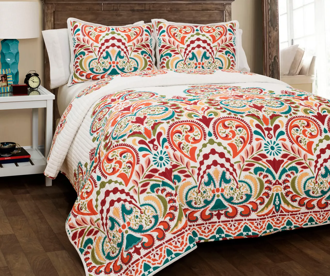 Jewel-tone blossoms and paisley accents bring botanical boho appeal to this vibrant quilt set that brings colorful personality into your sleep space. It features neat rows of quilting crafted from breathable cotton to keep you cozy through the night.