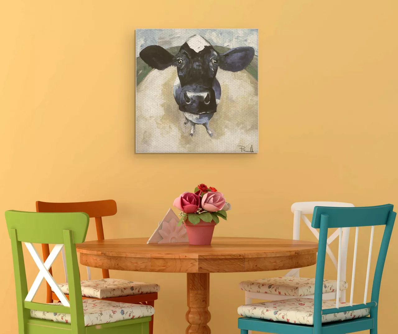 This friendly bovine, with its inquisitive expression, wanted to stop by to say hello in this canvas. Your friends and family will adore Cow Tale Light. This gallery-wrapped canvas is ready to hang and makes the perfect addition to a living or office space.