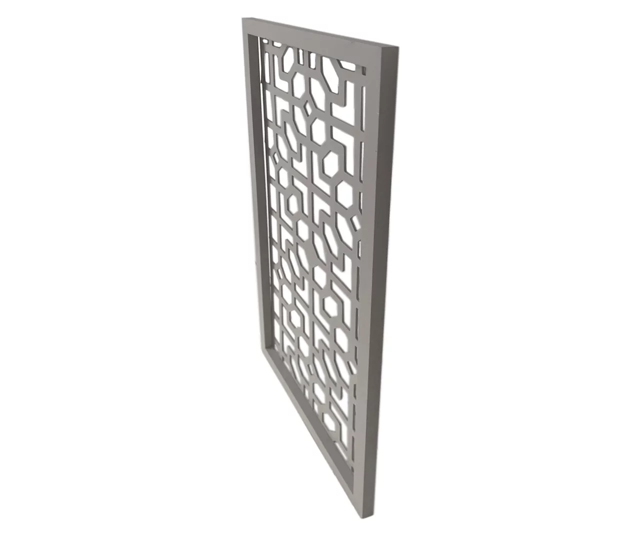 Add a stylish touch to the walls of your home displaying this panel set. Each piece features a vertical gray frame that is designed with a laser cut geometric pattern. Showcase them side by side or let them cap the ends of a window, mirror and more.