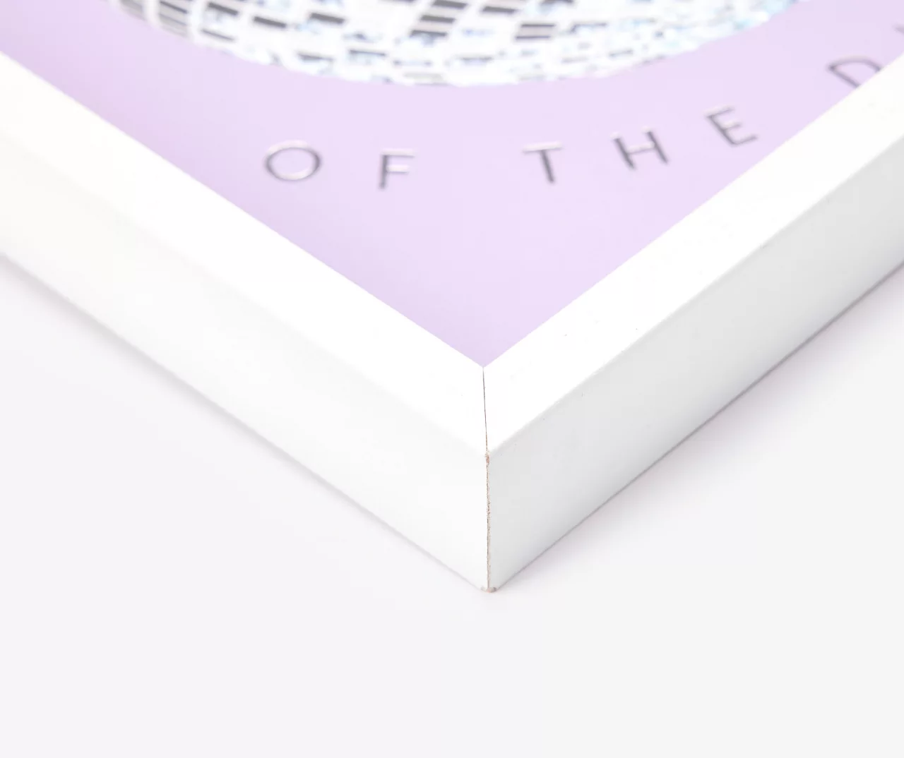 - Art sign with purple background, white frame and iridescent white glitter
