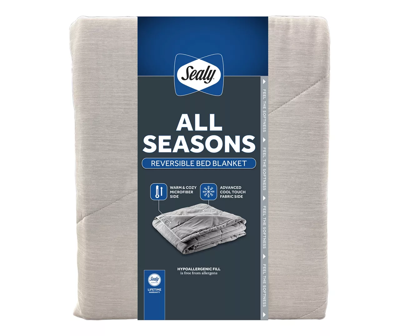 This Sealy blanket is designed for you to feel the coolness and warmth with advanced cool touch fabric on one side that reverses to warm and cozy microfiber fabric. Flip the side to fit your specific need, whether you sleep hot or cool. The hypoallergenic fill helps you breathe easier each night and it’s machine washable for easy care.