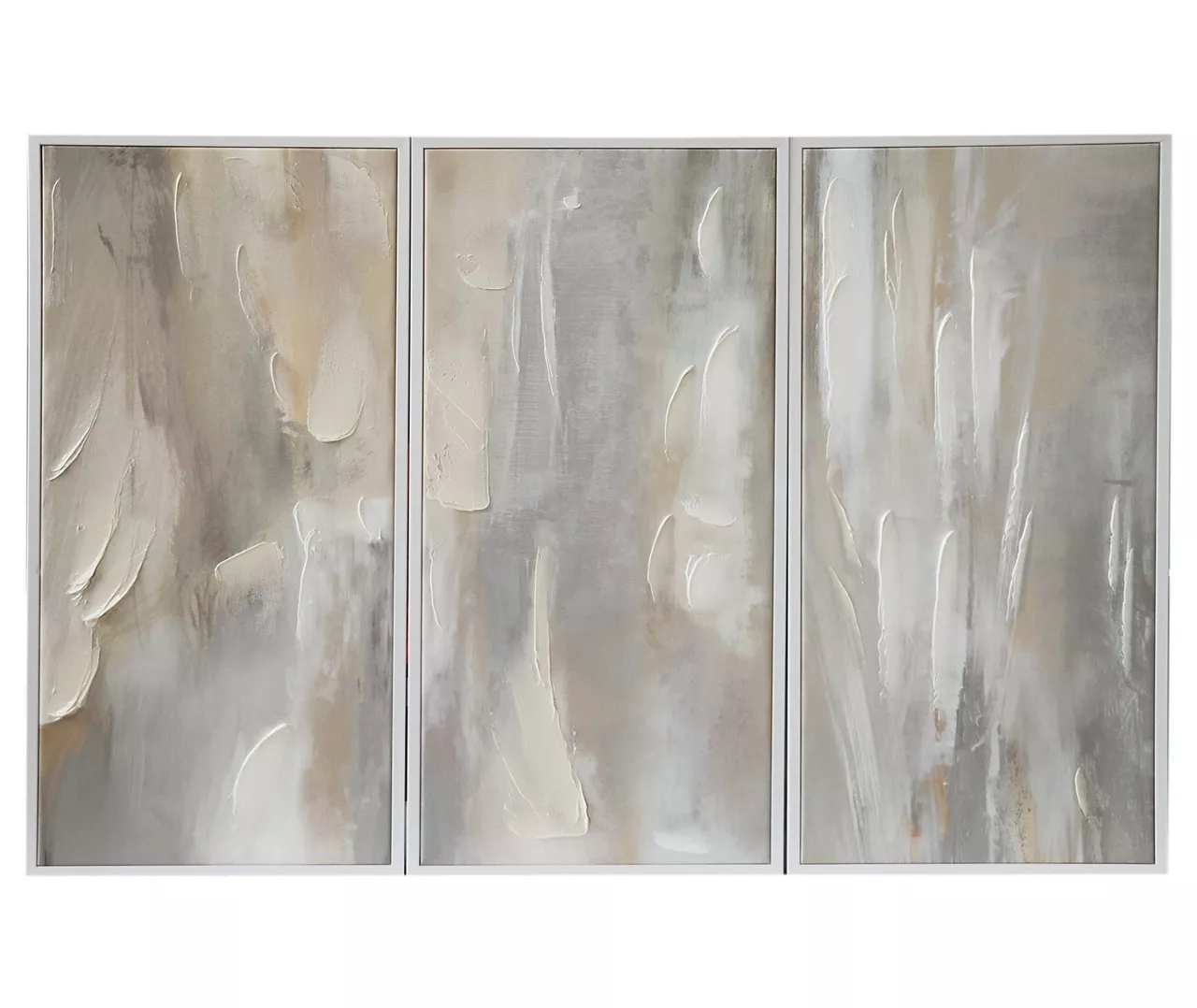 Upgrade your home gallery arrangements or spruce up an empty spot on your walls with the addition of this triptych canvas set featuring three panels that combine to create an abstract image in soothing gray hues. A slender frame surrounds each panel for a modern, polished look.