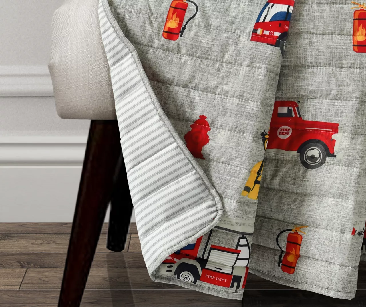 Add a heroic element to your little one’s room or play space with the firefighting motif of this patterned throw. It features a reversible design with stripes on the back side for twice the styling options, and its quilted design is sure to keep your kiddo cozy while they’re curled up with a favorite book or enjoying cartoons.