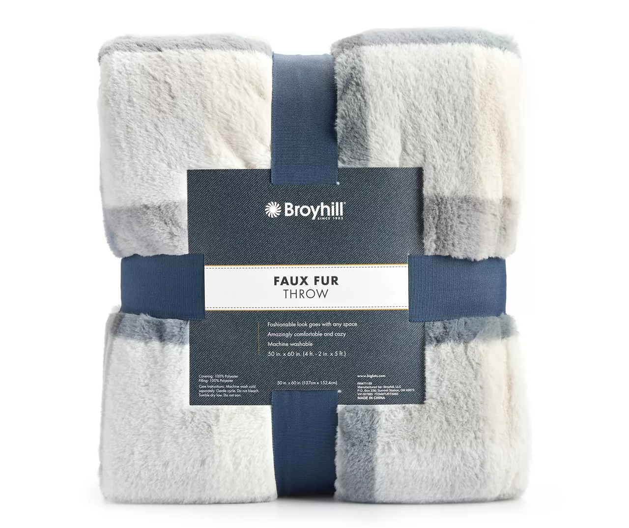 Stay cozy on cool days and nights while elevating your sofa, accent chair or bed with the chic plaid print and lush faux fur feel of this ultra-soft and cozy throw from Broyhill.