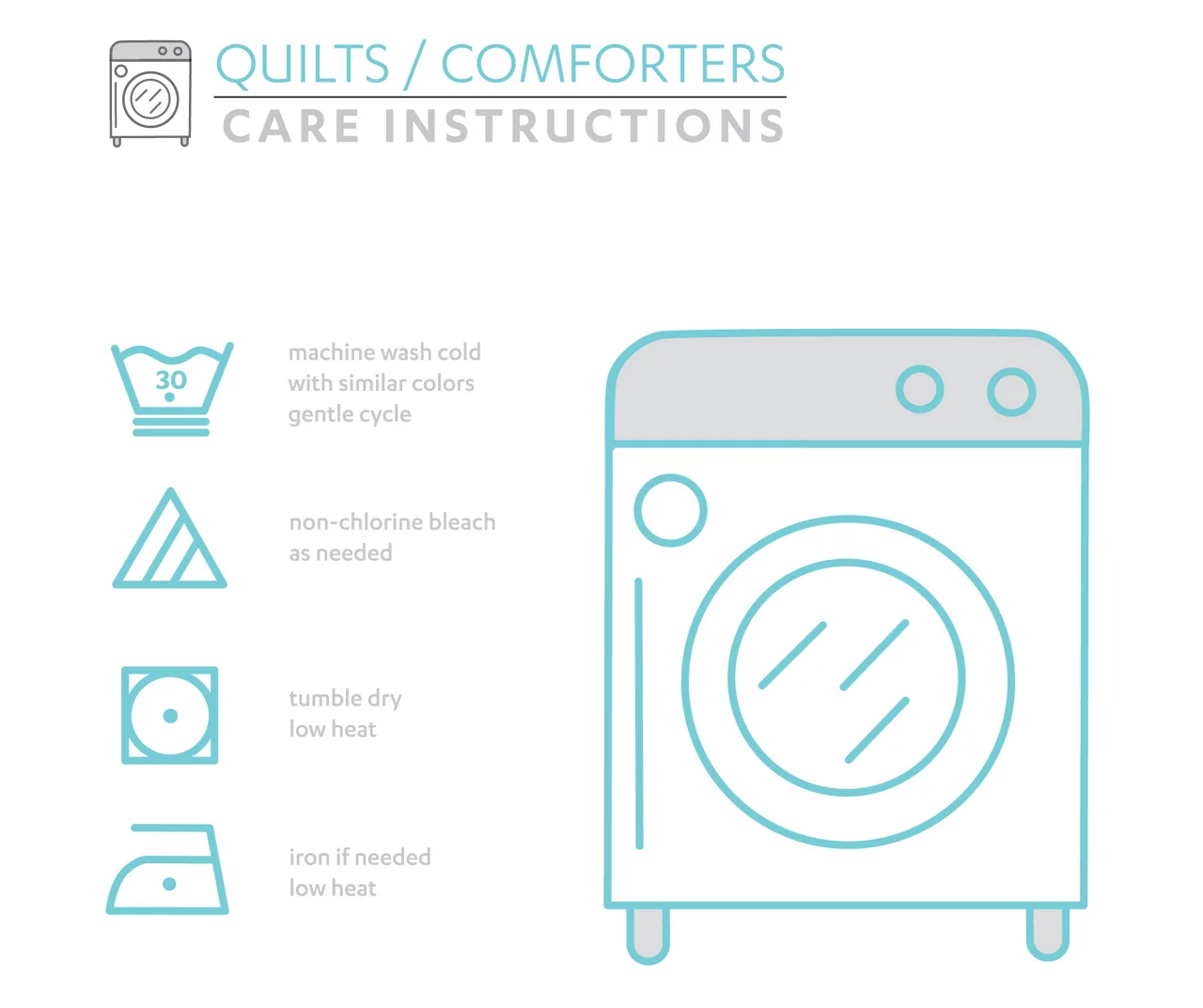 - Machine wash cold on gentle cycle. Use only non-chlorine bleach when needed