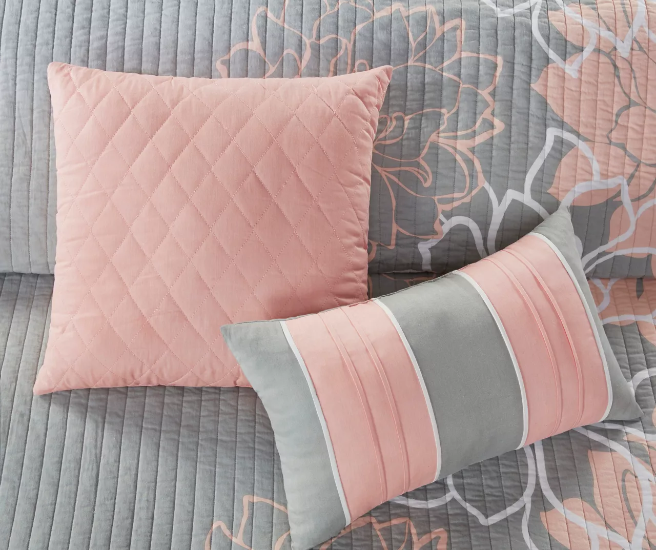 - Includes coverlet, 2 shams and 3 decorative pillows