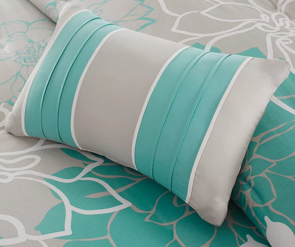 - Beautiful embroidery, quilting and pleating details on the decorative pillows