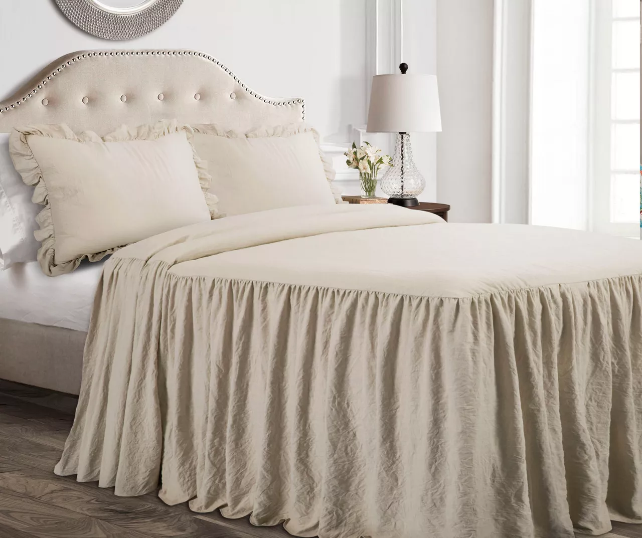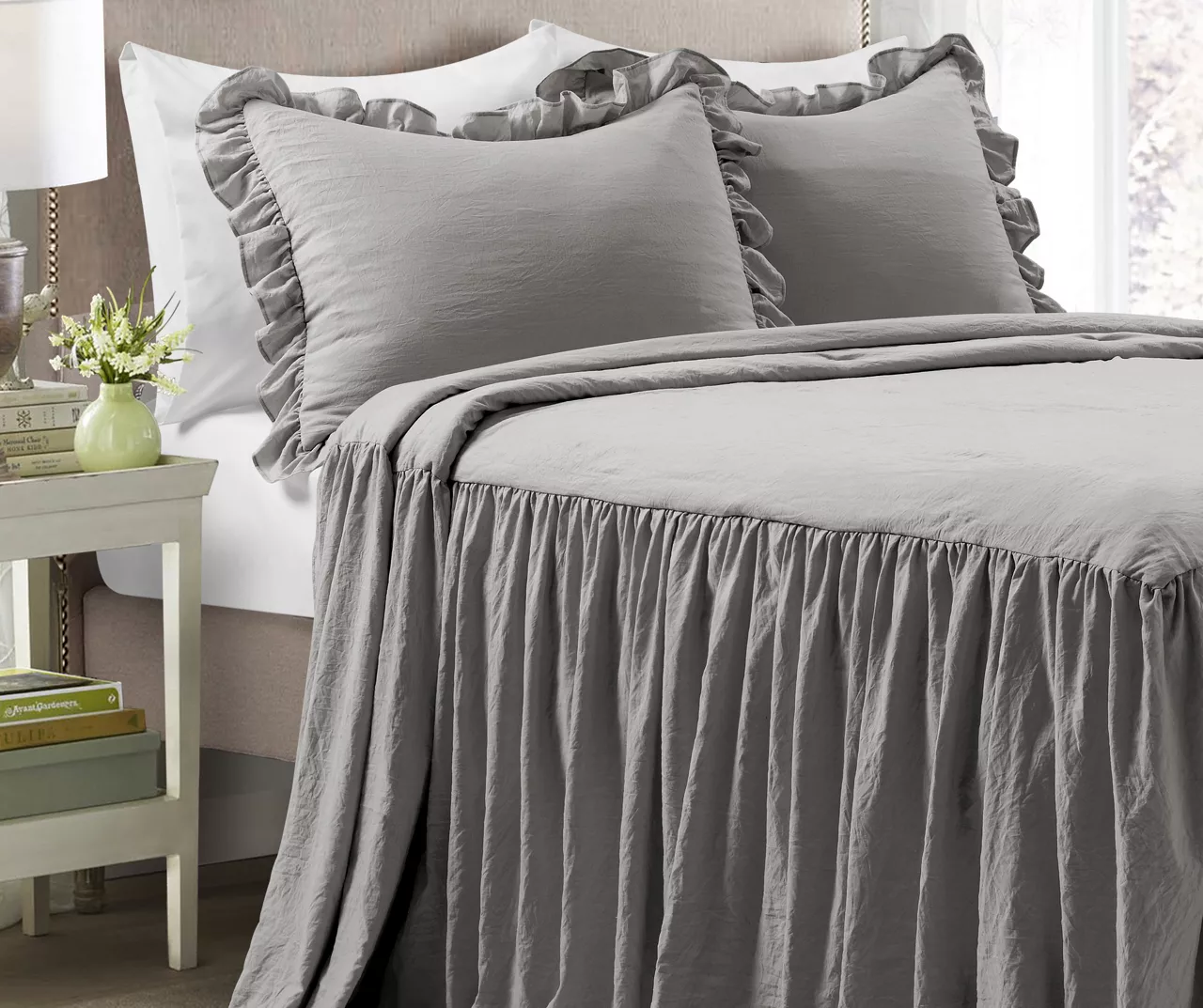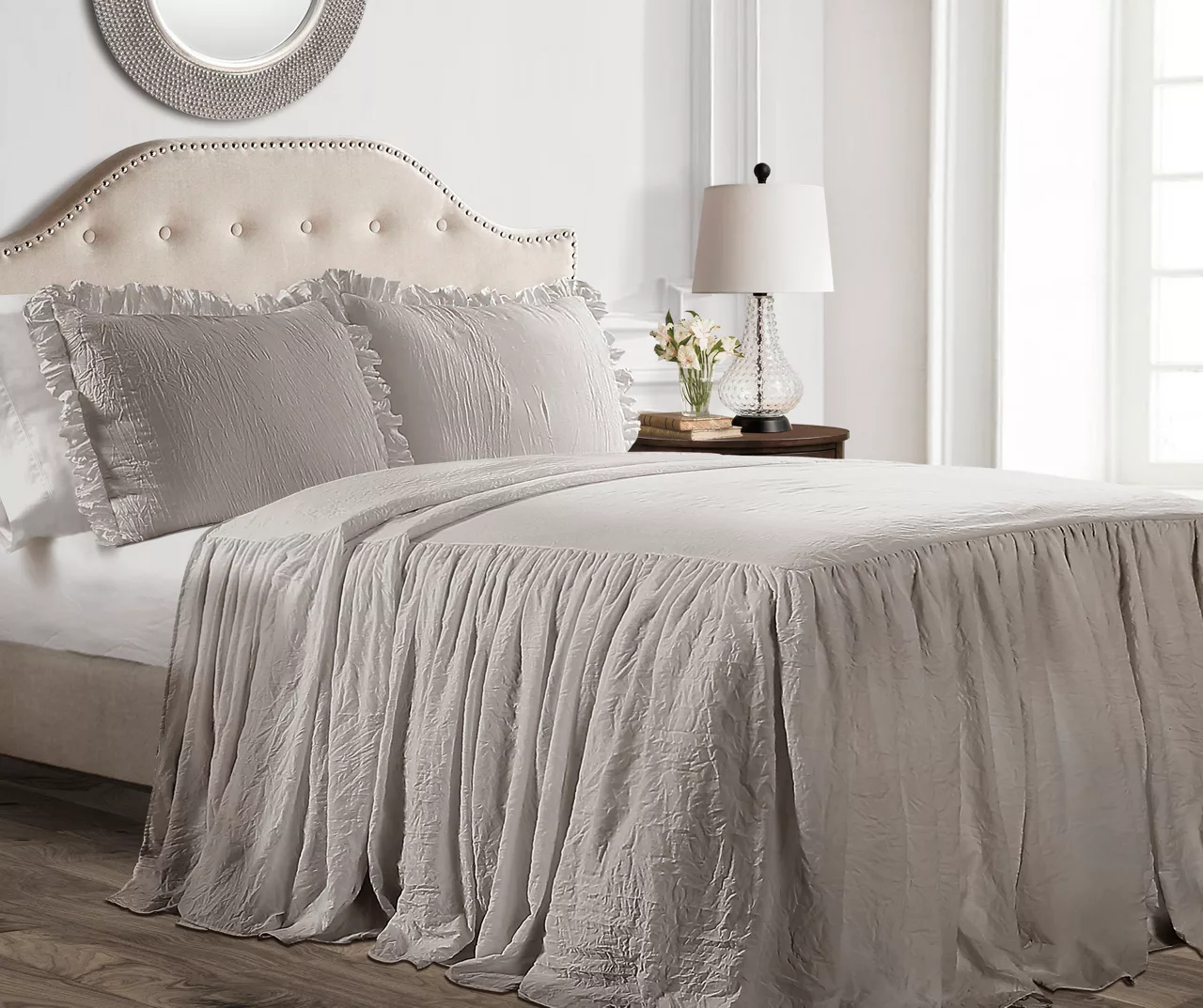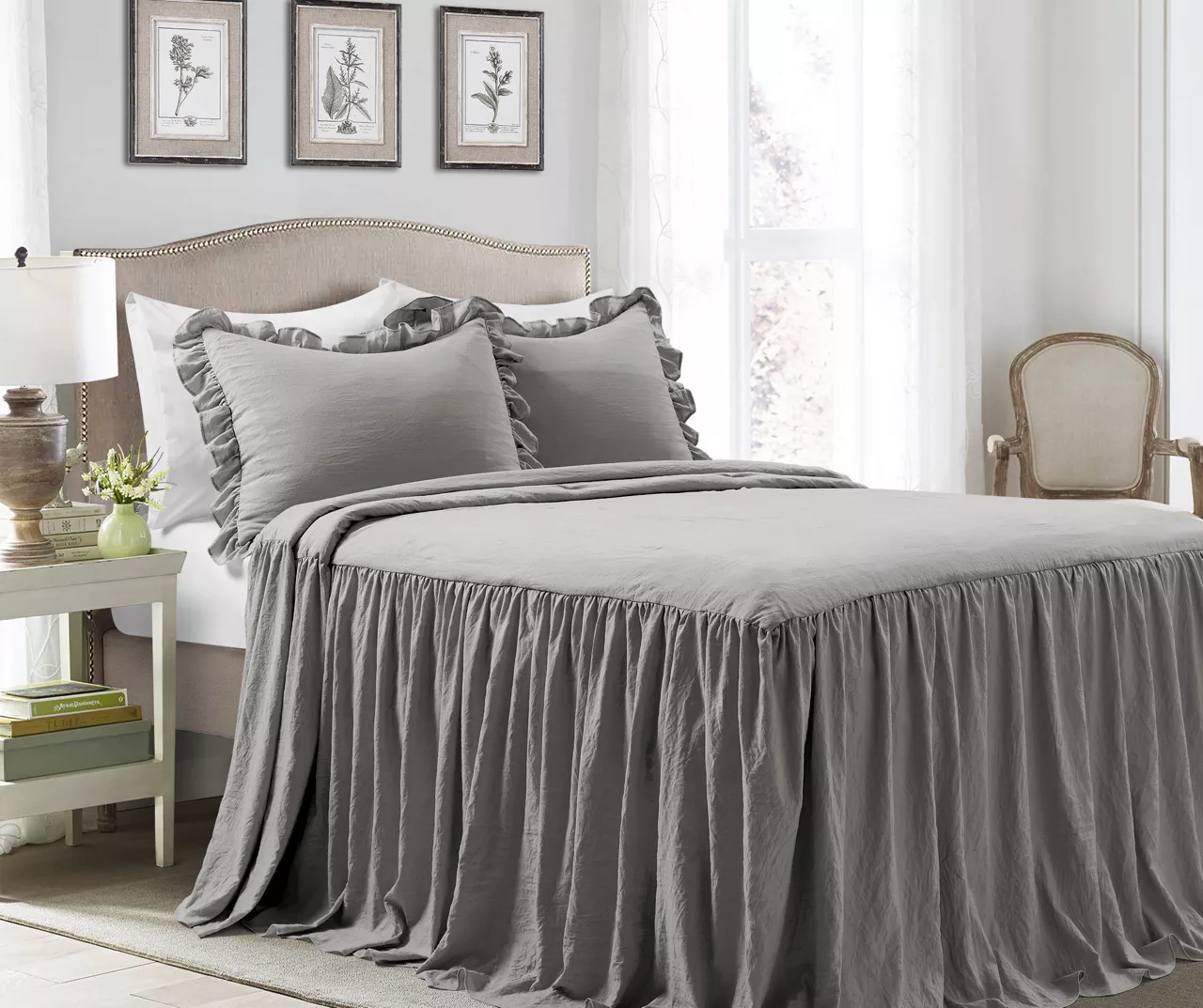 - Bedspread: 72″ W x 84″ L + 30″ drop