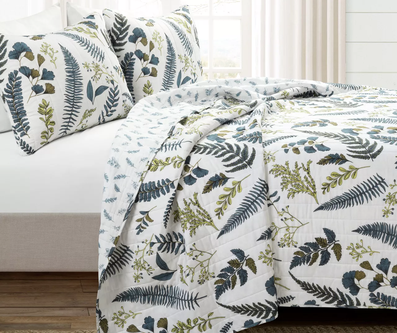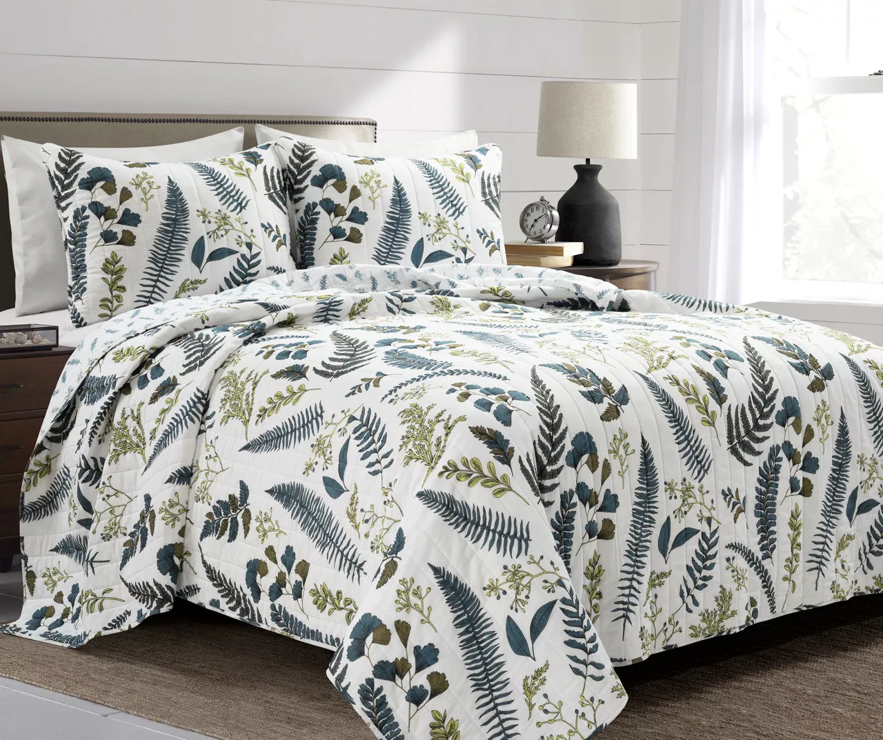 Bring paradise to your master or guest bedroom with this elegant quilt set from Lush Decor. The cotton fabric is covered with rotating images of leaves and flowers for botanical beauty that stands out. The quilt reverses to a smaller leaf pattern for twice the style choices.
