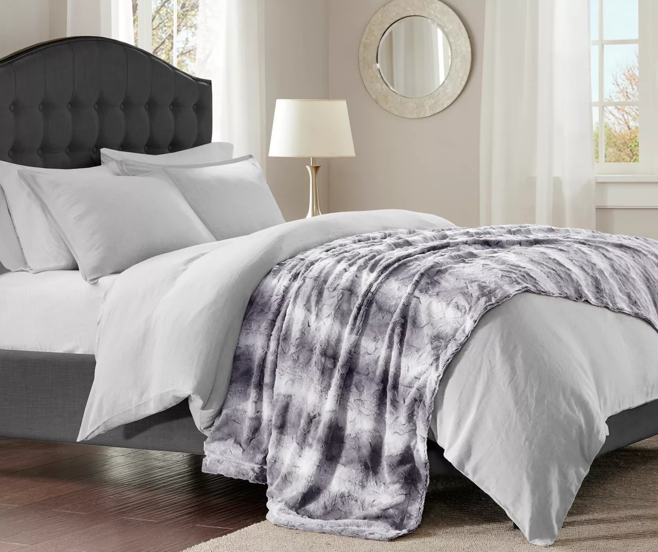 The Marselle bed-sized throw features a luxuriously soft faux fur front and reverses to solid faux mink fabric for wonderfully cozy comfort. This faux fur throw is the perfect modern update and adds a glamorous accent to your home thanks to its brown and tan color block stripe design.