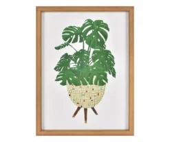 This wall art brings the beauty of illustration and nature to your home. A Monstera plant is captured in a raised planter with a grid pattern.