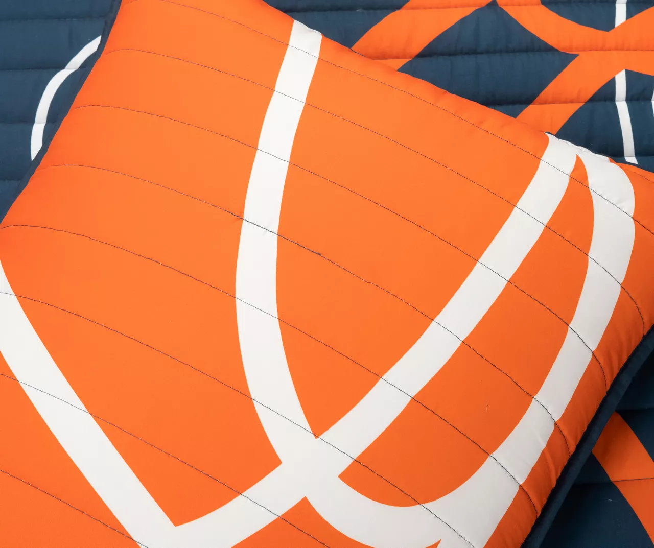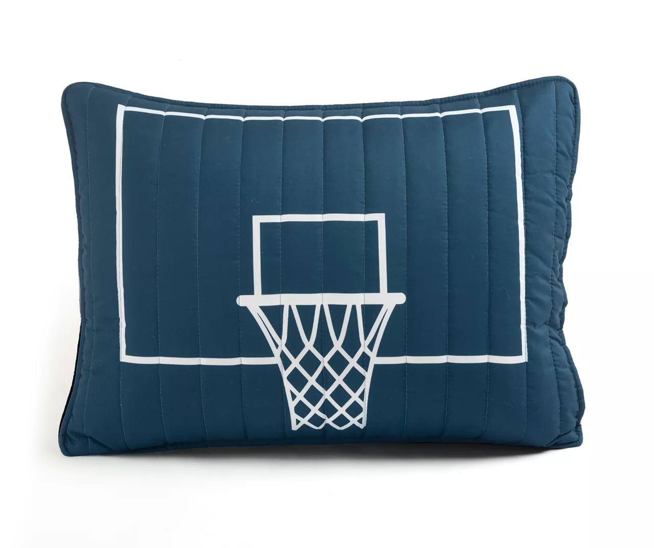 - Basketball-themed design featuring a net on the sham and court lines on the quilt