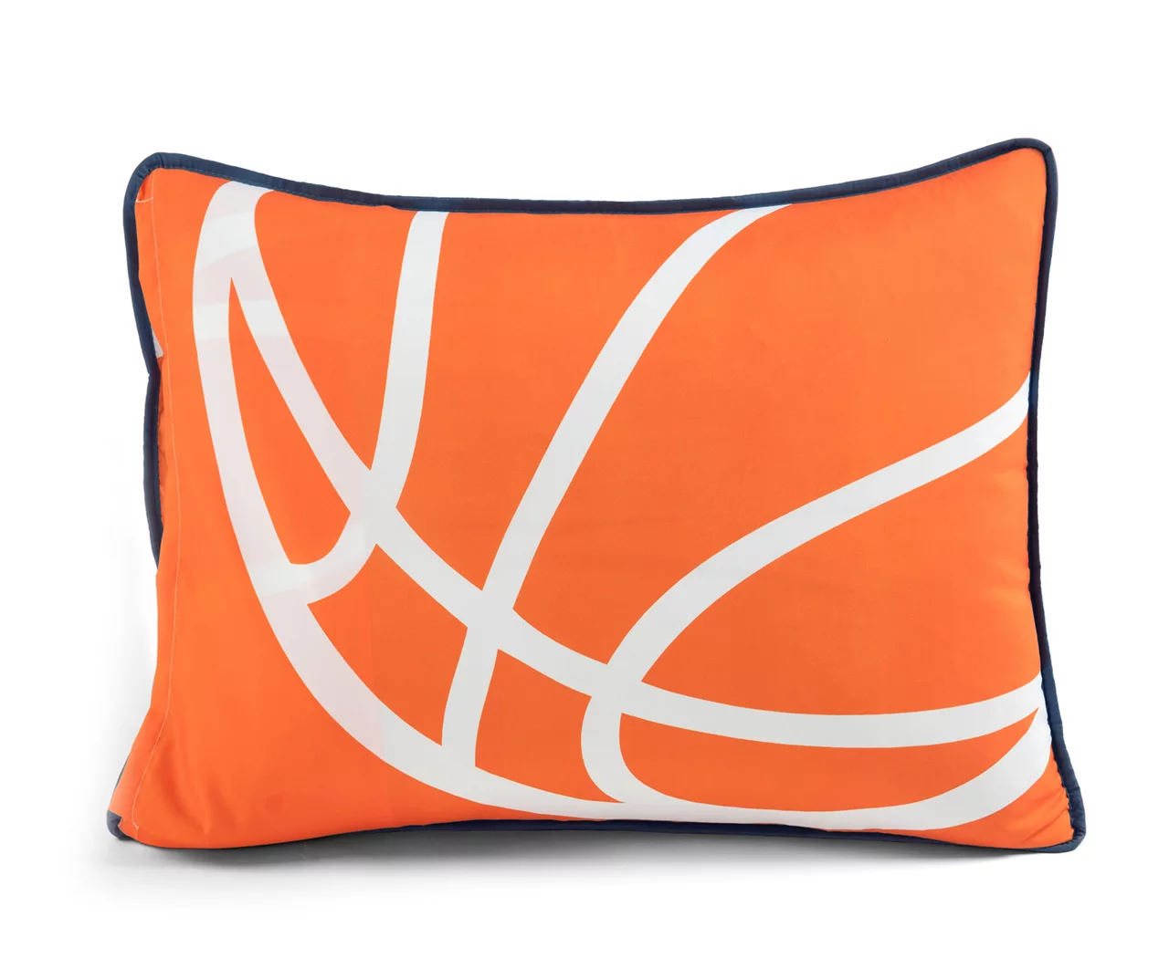 - Decorative pillows feature a round basketball design and rectangle typographic design with “Eat. Sleep. Basketball.” on the front