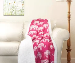 Intricately patterned elephants bring whimsical boho flair to this quilted throw. Soft sherpa fabric lines the trim and reverse side for plush warmth on cool days and nights. This pretty pick is sure to bring some laid-back vibes to a bed or living space.