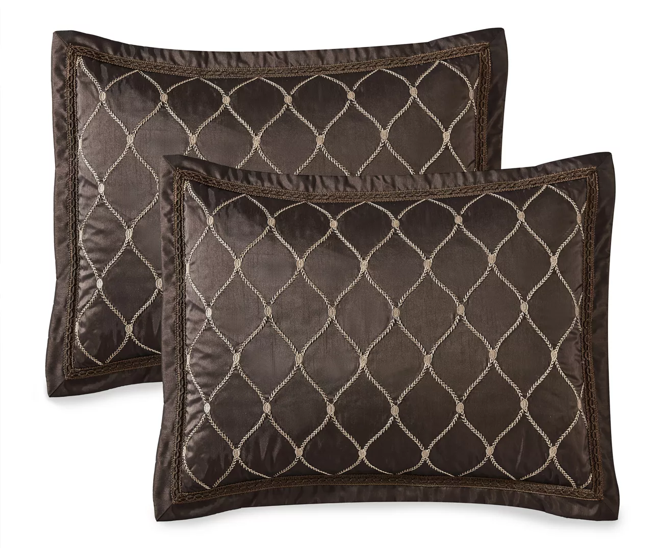 - Euro shams feature a jacquard paisley design bordered by a braided trim and elegant cording