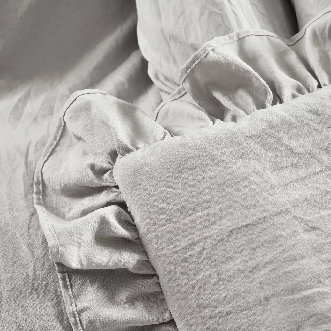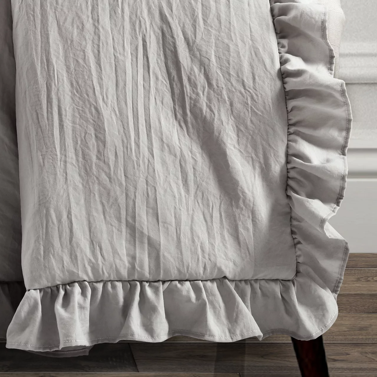 Give your living space a little playful panache with the crinkled texture and dramatic ruffled trim of this cozy throw. It helps keep you warm while also effortlessly complementing your space thanks to a versatile solid gray hue.