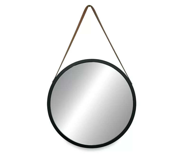 This round black mirror is the perfect way to see your own reflection in style. With a lovely modern aesthetic as well as an attached leather hanging strap, this mirror is a great, functional way to give yourself a touch-up while beautifully accenting your home.