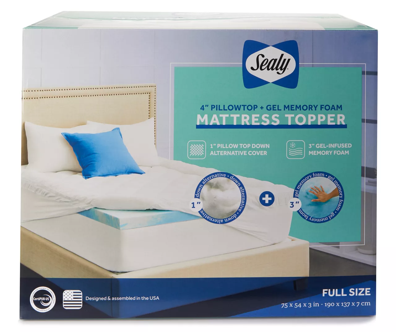 - Down-alternative pillowtop cover for an added layer of plush comfort