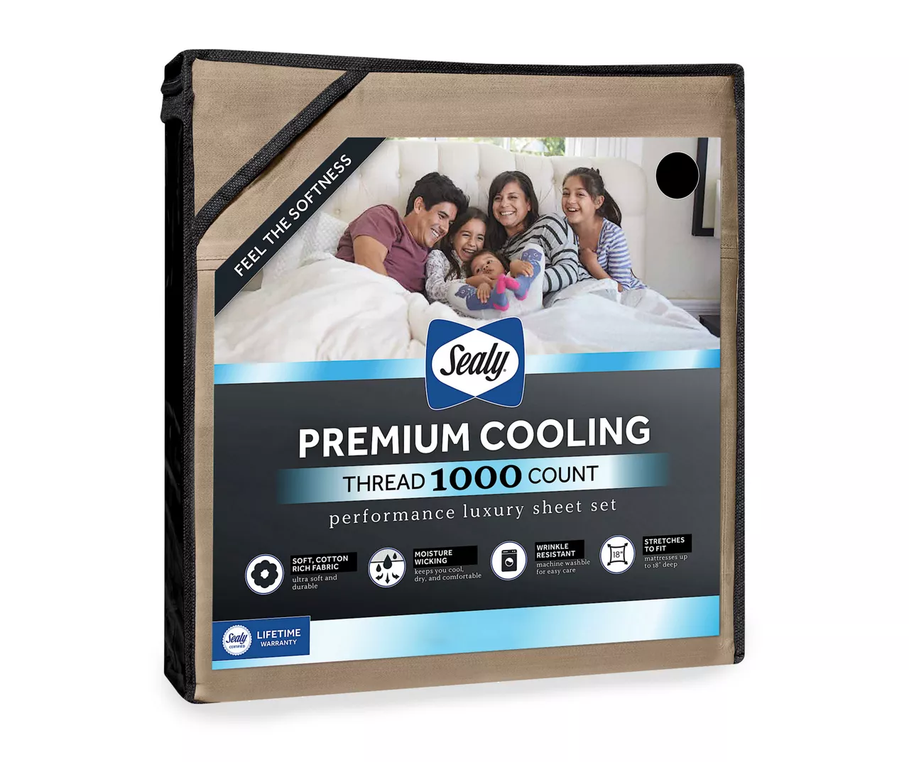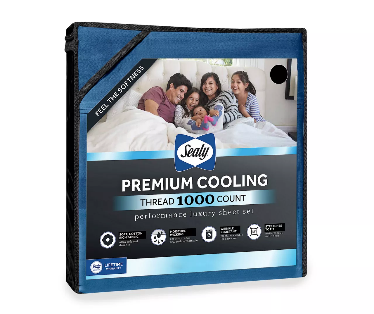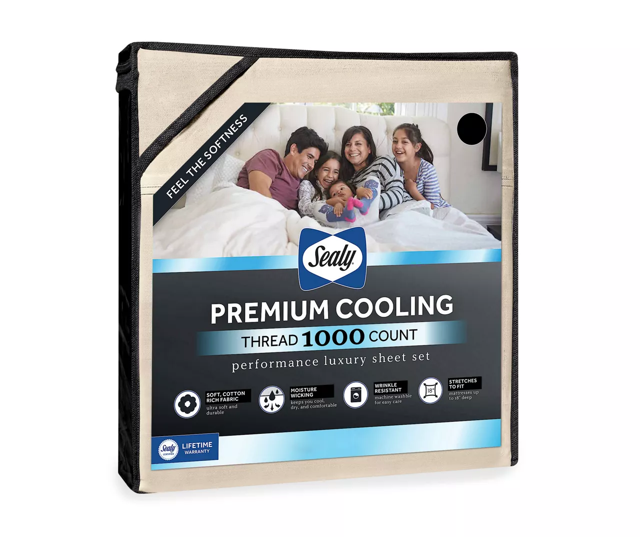 The Sealy Premium Cooling sheet set brings performance and luxury to your sleep environment. This sheet set features a breathable cotton rich fabric that is ultra-soft and durable. A moisture-wicking finish pulls heat away from your body keeping you cool, dry and comfortable all night long. The side walls fit mattresses up to 18 inches deep and won’t pop off. This set is machine washable and wrinkle resistant for easy care.