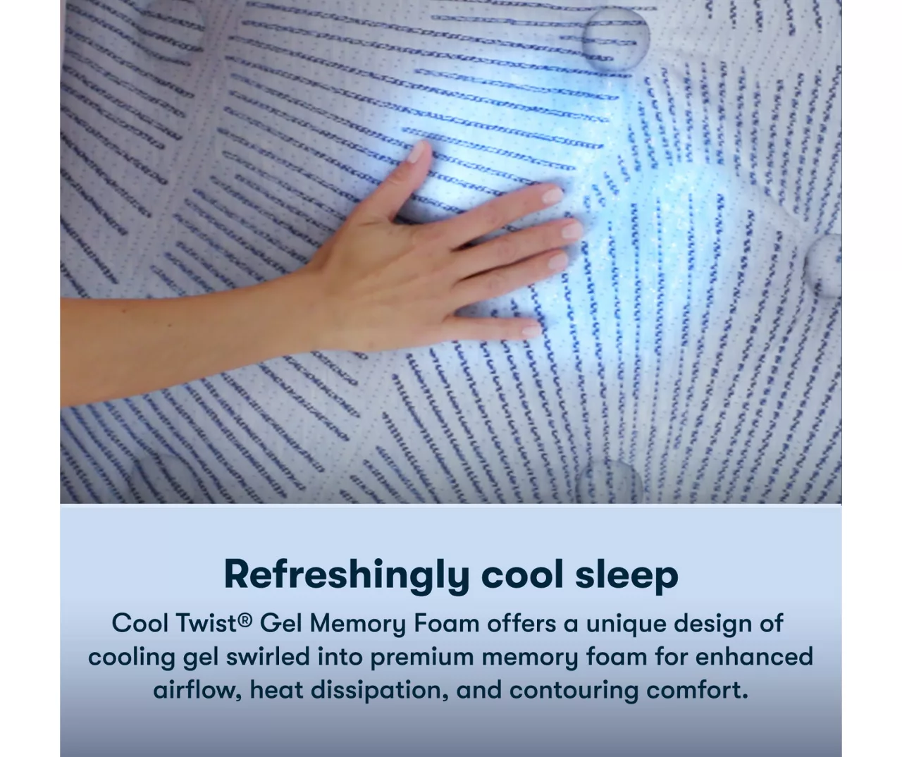 - Cool Twist Gel Memory Foam features cooling gel swirled into premium memory foam, helping to enhance airflow and heat dissipation for a feeling that can only be described as a cool, contouring type of comfort