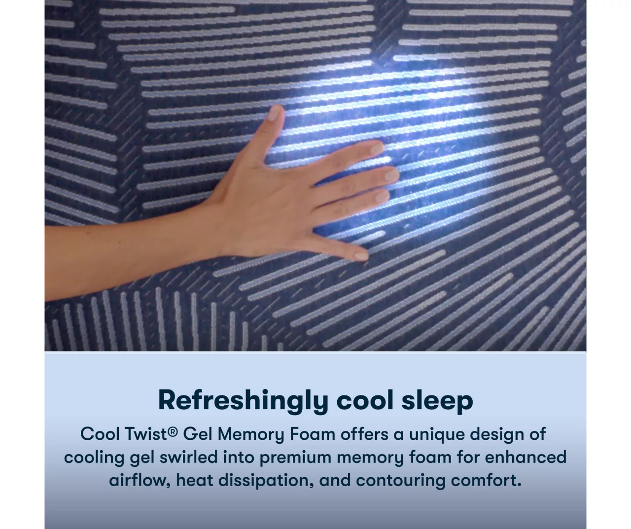 - Cool Twist Gel Memory Foam features cooling gel swirled into premium memory foam, helping to enhance airflow and heat dissipation for a feeling that can only be described as a cool, contouring type of comfort