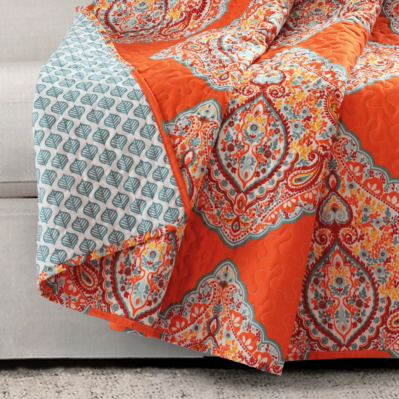 Paisley and floral details bring ornate boho beauty to the elegant arabesque pattern of this cozy quilted throw for a free-spirited home accent that keeps you warm under toasty polyester fabric.