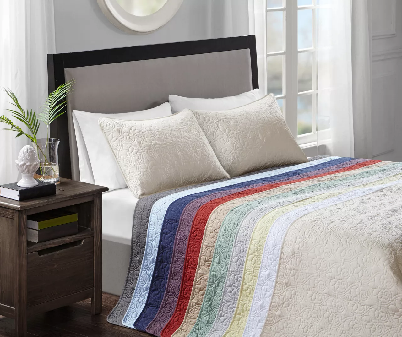The Vancouver bedspread set offers a charming cottage-inspired update to your bedroom. The reversible bedspread and sham flaunt a classic stitch pattern that creates a rich depth and texture on the face of the bedding set. Prewashed cotton filling provides added comfort and durability, while the oversized dimensions allow the bedspread to drape better. The bedspread also has an antimicrobial treatment that helps provide built-in freshness protection to keep fabric lasting longer.