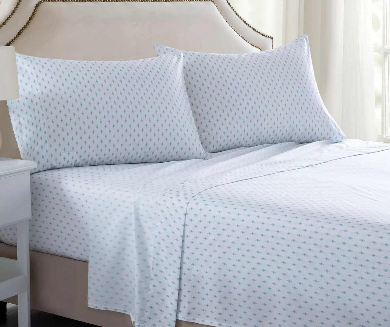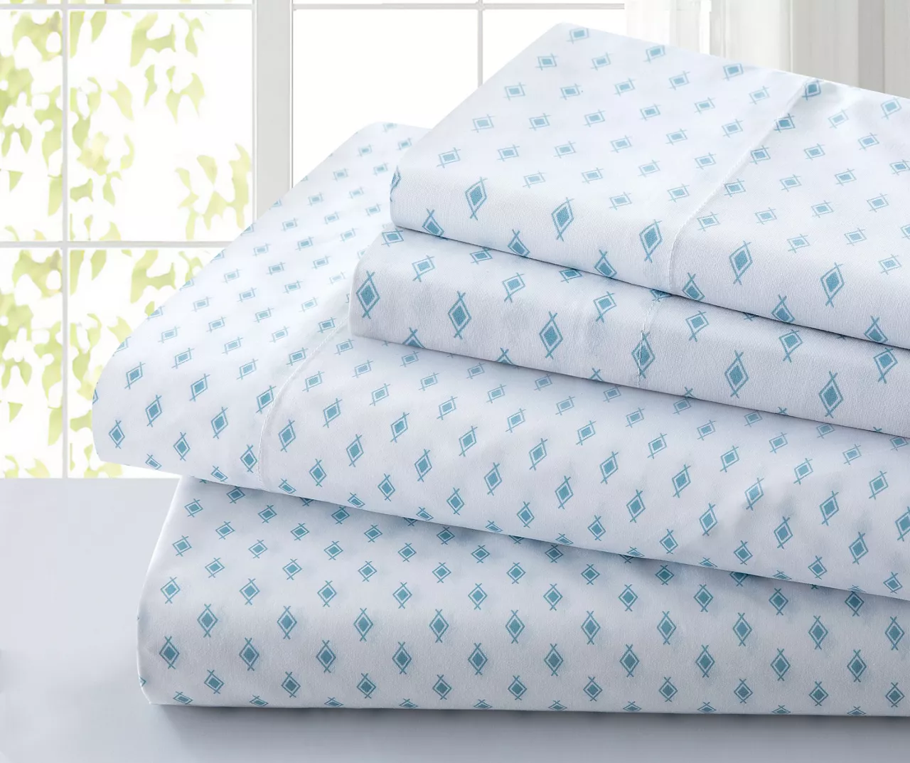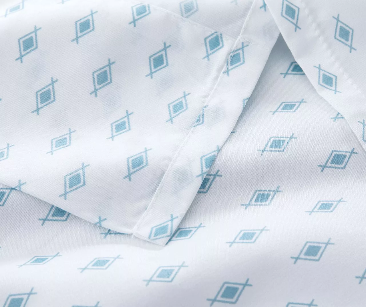Transform your bed or a guest bed with this sheet set made using specially sourced microfibers woven tightly together. The brushed microfiber fabric features a geometric tile pattern and is soft to the touch while also being wrinkle-resistant for easy care.