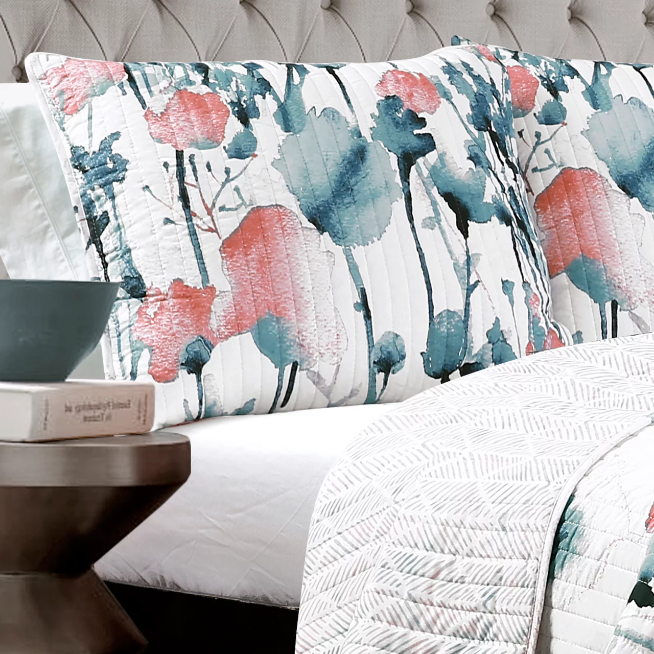 Richly hued pattern in a color block design decorate this set to bring elegant bohemian style to your bedroom, while a geometric line pattern on the reverse side of the quilt finishes the look with a modern flourish. Crafted from cozy and breathable cotton fabric, this quilt set is the perfect way to instantly brighten your room or a guest room.